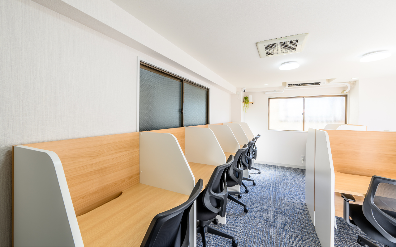 設備 :全席個別ブース、Wifi/電源/ドリンク無料、防犯カメラ、スマートロック、換気システム等